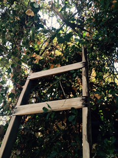 Pictures: The ladder to the blackberries; The girls slept in a fort; Going through tons of stuff and getting it cleaning out.
